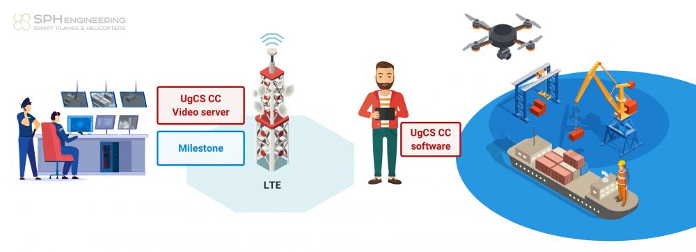 The solution consists of a drone control software UgCS CC, developed by SPH Engineering, a high-endurance flying UAV platform manufactured by Finnish company VideoDrone, equipped with high resolution surveillance cameras, as well as video management system Milestone ® XProtect and configured hardware platform (workstations/servers) required for successful operations provided by Mondot, the deliverer of the solution.