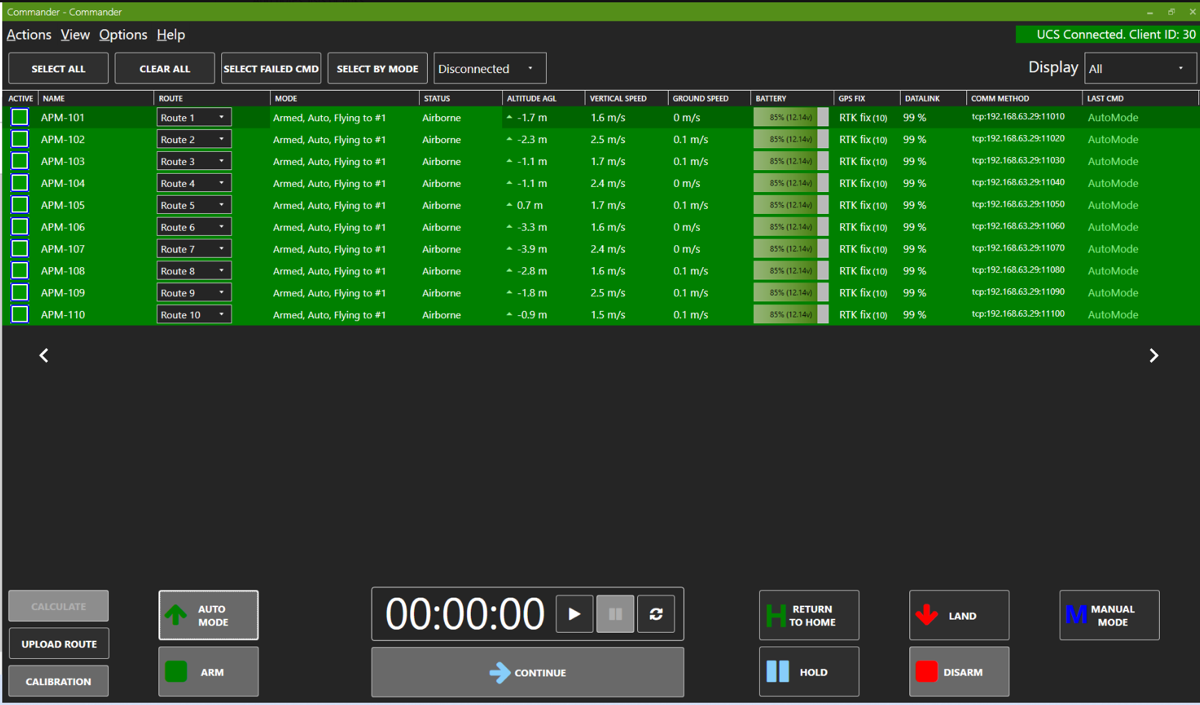 - Assign each of the connected drones a planned route and launch them simultaneously.
