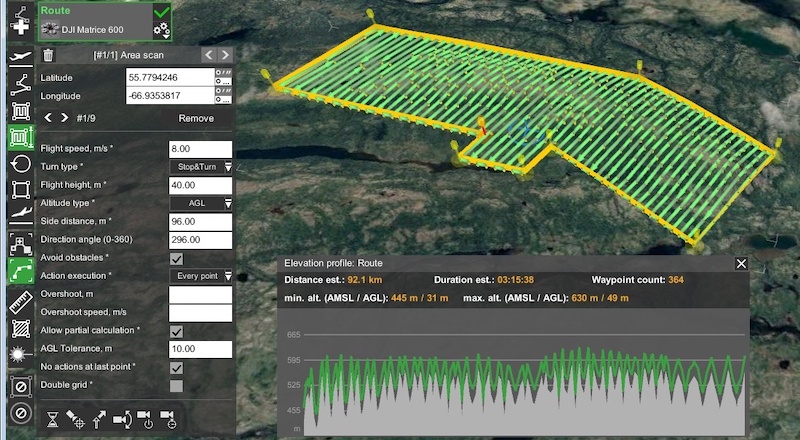 The mission planning software is to calculates the appropriate altitude at every stage of the flight based on the elevation data in the form of a DEM (digital elevation model).