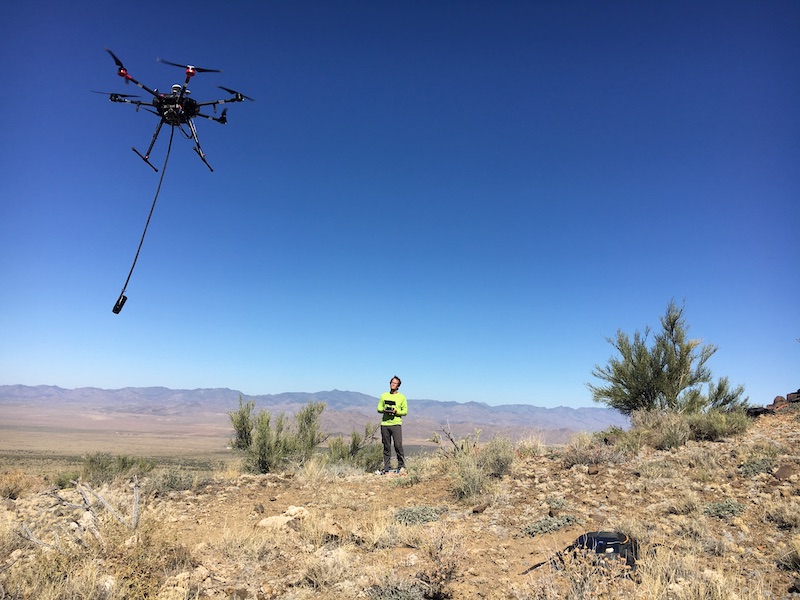 A magnetic survey mission with a UAV that carries a sensor attached on a tow cable 5m above the ground is very different from a classic photogrammetry mission (when a UAV flies at 100m altitude). Therefore, the magnetic survey’s UAV operator must control the clearance between the magnetometer sensor and the ground and/or obstacles and be ready to take over the control of their UAV with a remote controller.