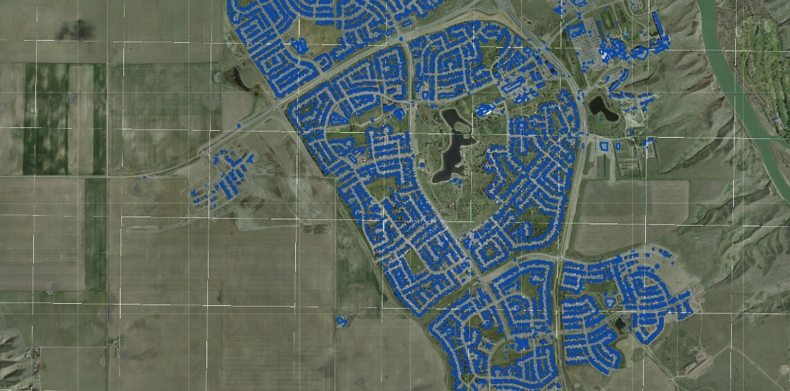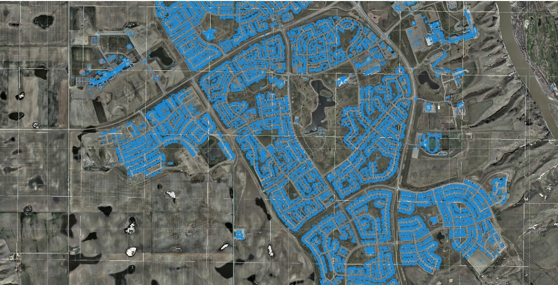 Aerial imagery was obtained for a 10-year period to investigate the timing and the rate of sprawl. Measuring land cover is a common method of evaluating the level of urban sprawl. Building footprints, required for the urban sprawl analysis, were extracted using SPH Engineering’s ATLAS platform. ATLAS was instrumental in detecting buildings from the georeferenced aerial images provided by the City of Lethbridge, which were subsequently exported as shapefiles for use in ArcGIS Pro and ArcMap for further analysis.