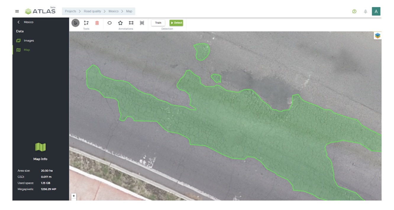 Here is an example of how areas with cracked asphalt can be identified with Atlas: CASE#1