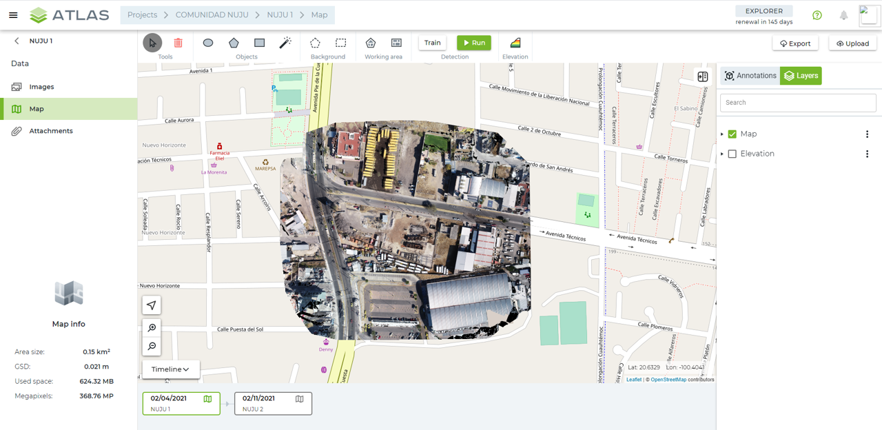 ATLAS allows G2 Ingenieria de México to process and store orthomosaics that are actually digital twins of the construction process in a given time on an online platform for control and monitoring of the works that reflect the progress the company is currently making and to be able to take corrective actions and/or preventive for future jobs.
