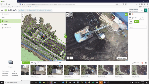 - Check the dots placed over the map to determine whether images from all areas of interest are present after the survey