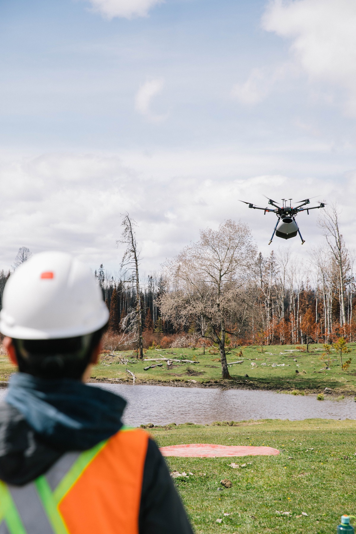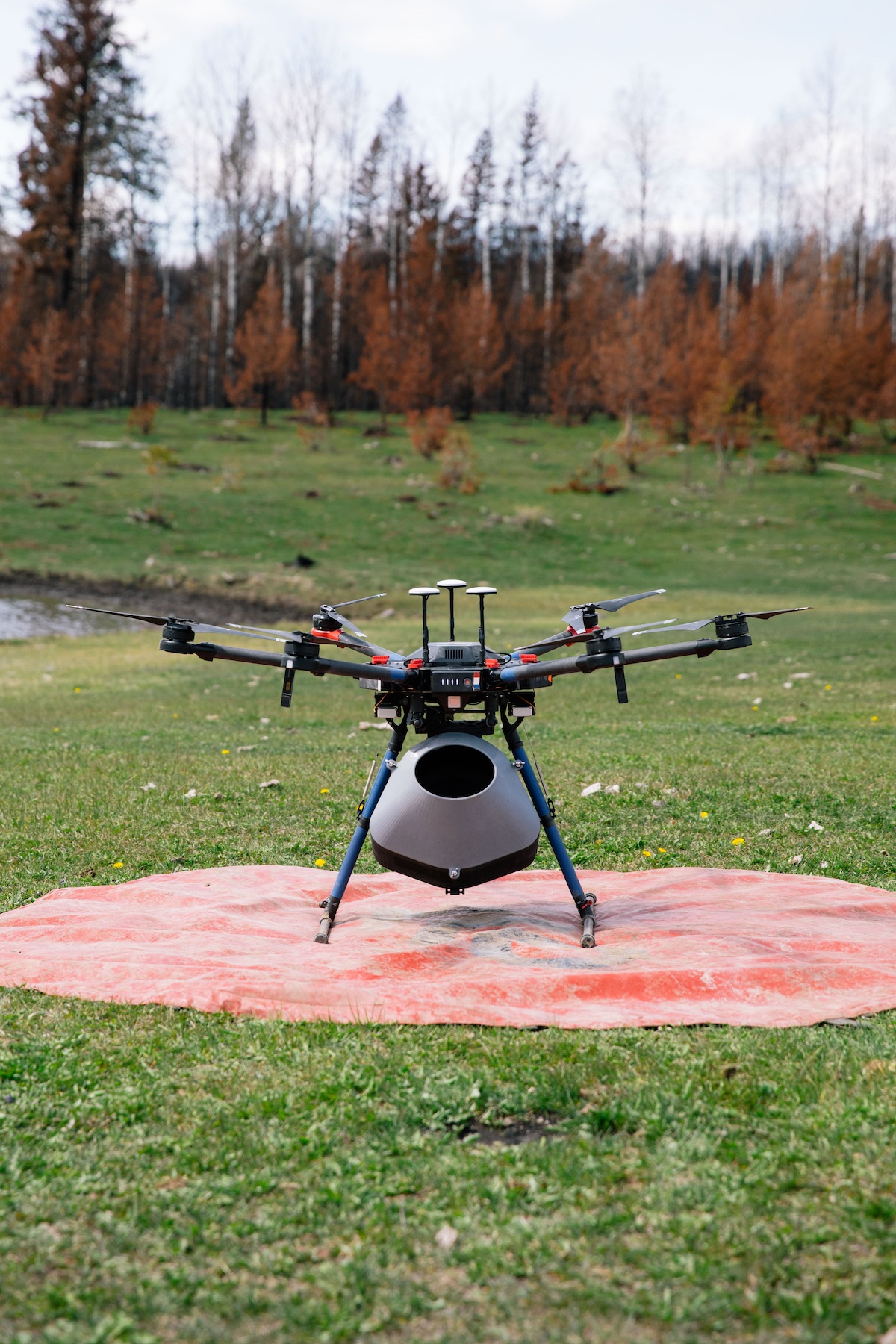Flash Forest uses UAV technology, automation, and ecological science to regenerate ecosystems on a global scale. Although UAV-based data collection is common across Canada, data collection specifically for tree planting operation can be considered innovative for Flash Forest. The overall tree planting workflow with a drone includes mapping, generation of flight paths, deployment of drones equipped with custom payload systems, and recording of mission data.